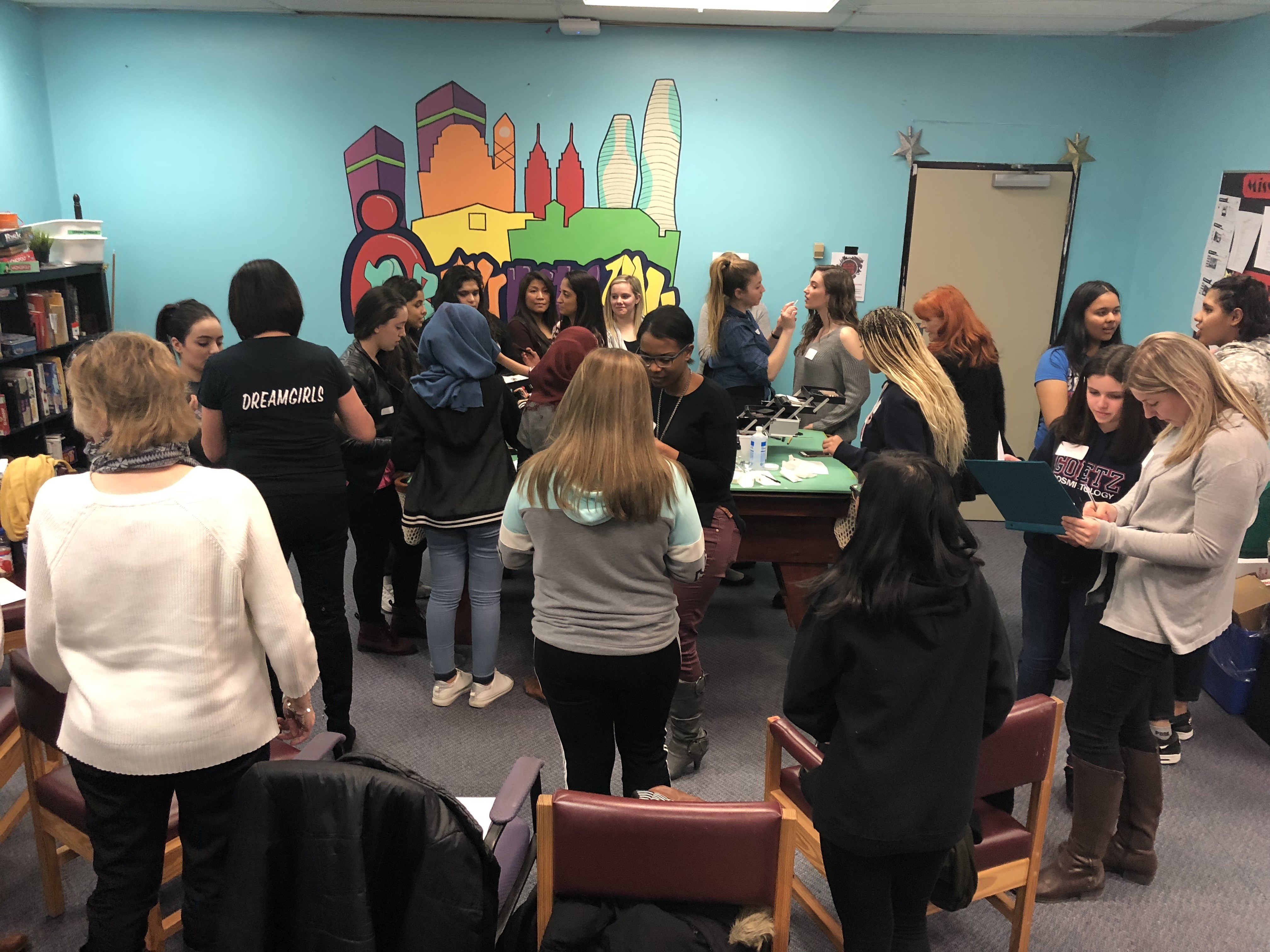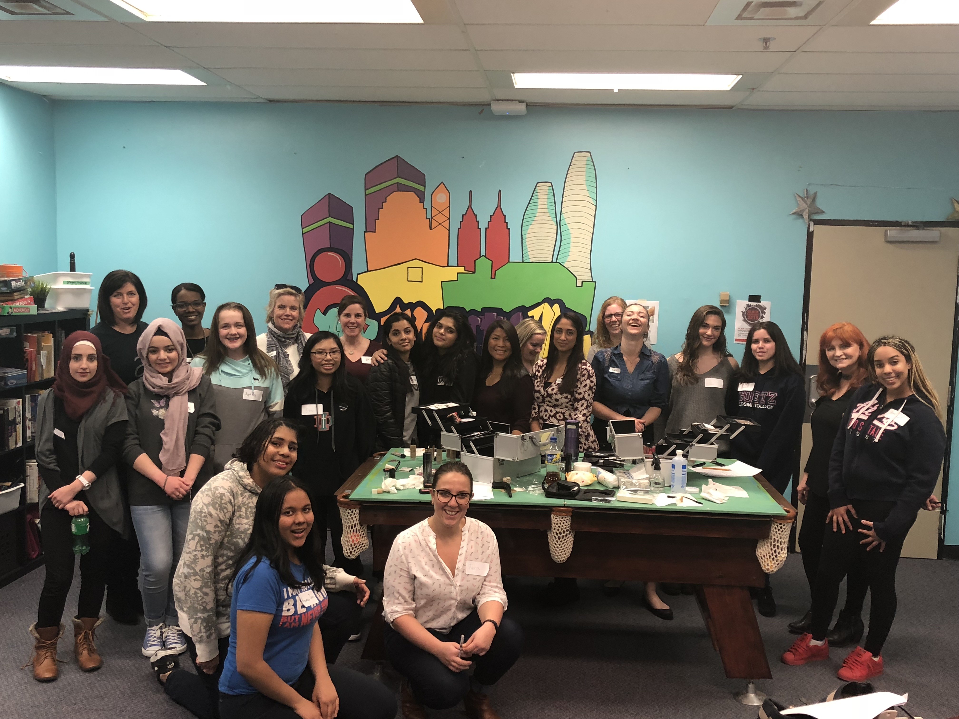 In February, Nexus welcomed staff from the Arbonne Charitable Foundation to a meeting of the Between Us Girls group at the Nexus Youth Centre. Fourteen excited and engaged Nexus youth met with Arbonne home office staff and independent consultants to talk about beauty and self-esteem before learning new skills in a make-up tutorial. All of the participants left the event feeling encouraged and beautiful with an Arbonne gift bag in tow.The Arbonne Charitable Foundation’s mission is to provide support for programs and opportunities that promote the development of confidence and self-esteem in youth, regardless of gender. To date, the Arbonne Charitable Foundation has helped more than 265,000 youth develop increased confidence through programs like Nexus’s Between Us Girls group, which fosters opportunities for young women to talk and learn together about their identity and development.
